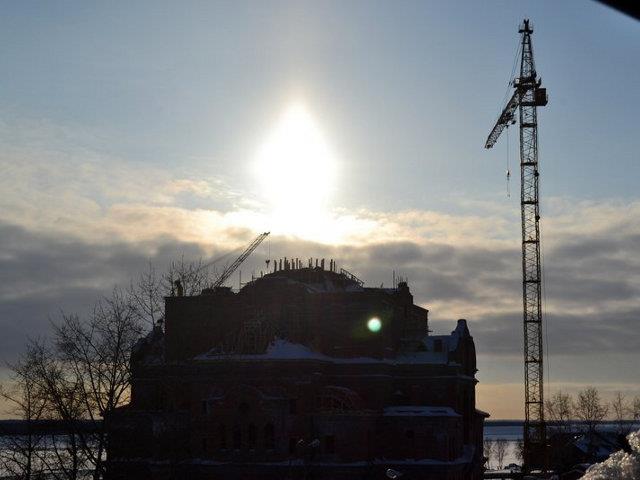 | Над строящимся Архангельским кафедральным собором уже сияет солнечный купол.